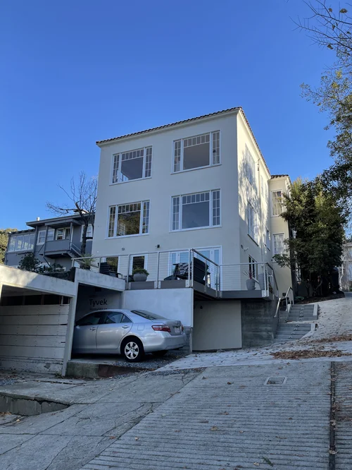 The owner of this multifamily unit saw an opportunity to create additional income by converting an unused storage area to a 790 square foot, two bedroom apartment. A large deck nearly doubles the units living space and creates a shaded parking space below.